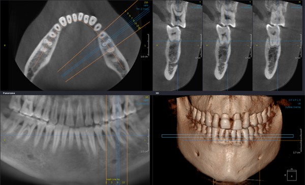 К счастью, в современной стоматологической диагностике, и в нашей клинике в частности, используются специализированные дентальные томографы. Это оборудование не только позволяет получать высокоточные снимки с толщиной среза 0,15-0,3мм, но и создавать 3D-модель сканируемой области. Имея такую информацию, стоматолог получает возможность изучить необходимый участок зубочелюстной системы под любым углом и с любой точки зрения и правильно составить дальнейший план лечения. Программа точно воссоздает все необходимые данные: форму, расположение, строение и размеры элементов челюстно-лицевой области.